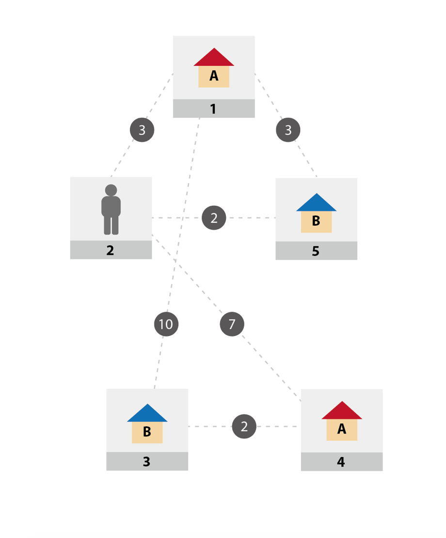 # 짧은 거리의 집이 여러 개일 때 A,B 확인