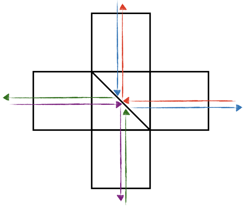 # 1이면 오른쪽(1), 왼쪽(3)만 막히고 다른 방향은 일정
