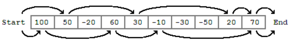 이동할 수 있는 만큼 비교하면서 움직이고 다음 차례로 이동하면서 반복하는 방식