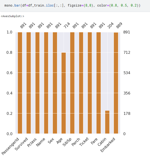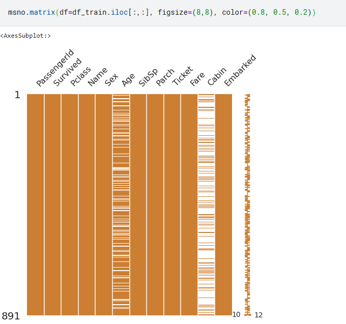 또한 missingno 라는 라이브러리를 통해 null 값을 쉽게 파악 할 수도 있다.