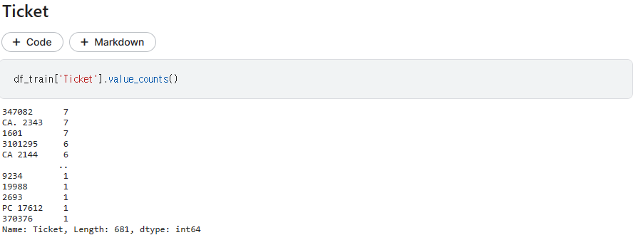 Ticket의 경우 다 다르고 string 이기 때문에 정확하게 파악해보고 특징점을 찾아서 활용하던가 제거하는게 좋아 보임.