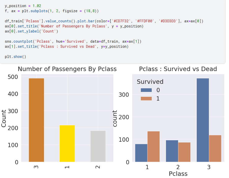이런한 서수데이터는 각각 몇개씩 데이터가 분포해있는지 파악을 해보고 Target과 관계를 확인하기 위해 Pclass에 따라 target의 분포를 확인해 볼 수있다.
