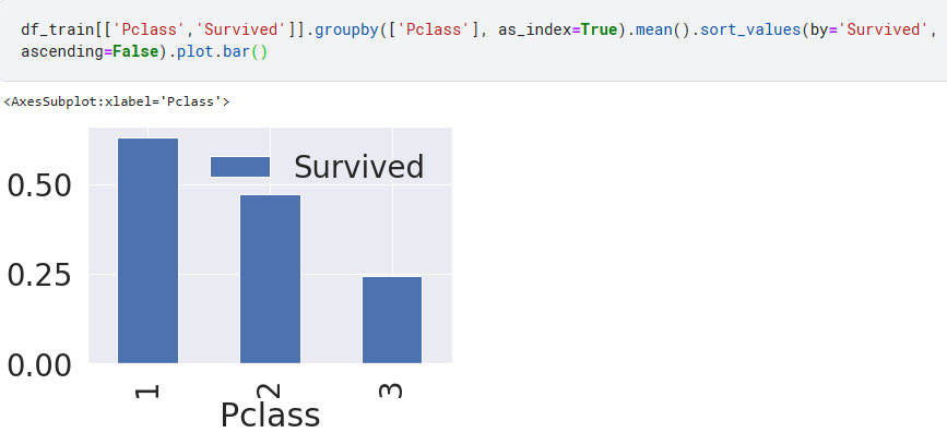mean을 통해서 클래스별 생존률을 알 수 있음.