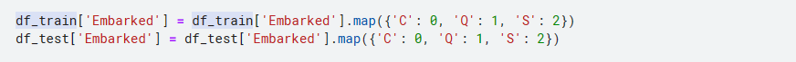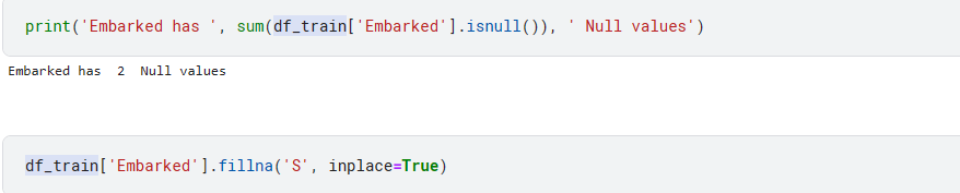 Embarked는 Null이 2개라 가장 많은 S로 대체해서 넣음