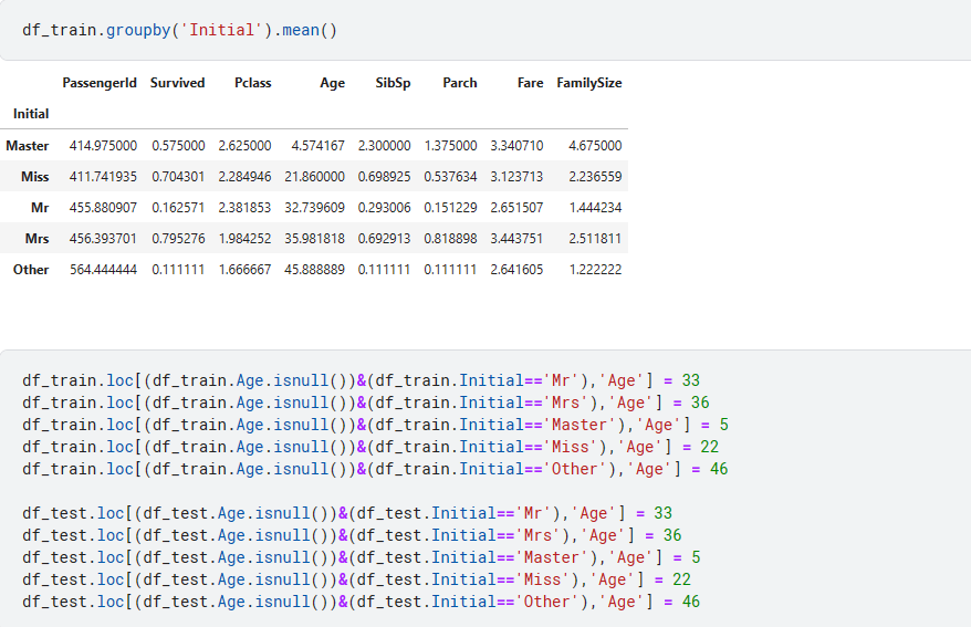 각 Initial의 나이 평균값으로 대체해서 넣어준다.