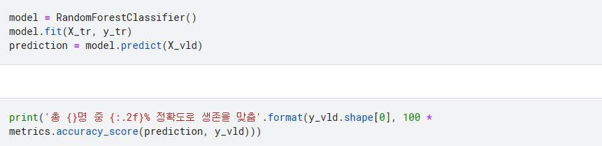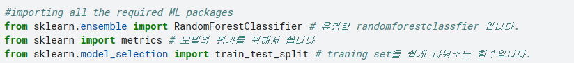 model을 준비 다른 여러 모델이 있지만 제일 무난한 랜덤포레스트