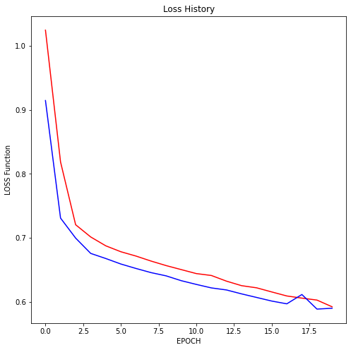 Loss History를 보면 트레이닝, 테스트 로스 모두 에포크가 증가함에 따라 점점 감소하는 것을 확인