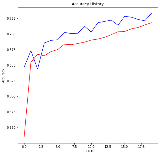 빨간선이 트레이닝학습 결과/ 파란색은 테스트 데이터를 평가