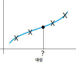 내삽 - 오른쪽 그림처럼 학습에 사용된 데이터의 내부 범위를 예측하기 위한 기법