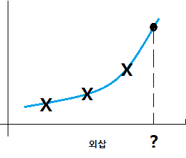 외삽 - 왼쪽 그림처럼 학습에 사용한 데이터의 바깥의 범위를 예측하기 위한 기법