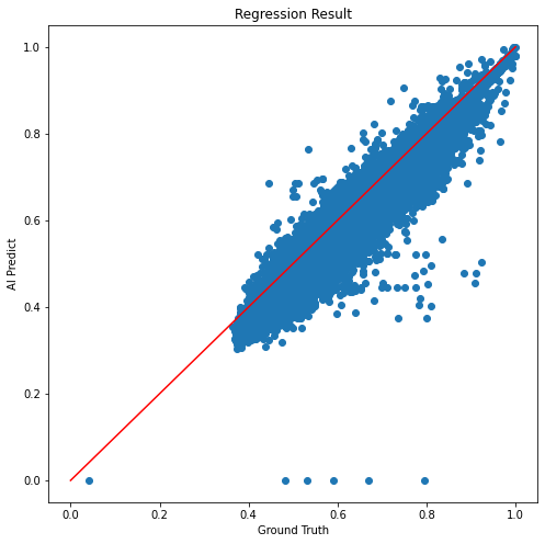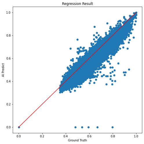 회귀 결과도 짙은 선의 축을 따라 얇게 분포하여 학습이 잘 된 것으로 보임.